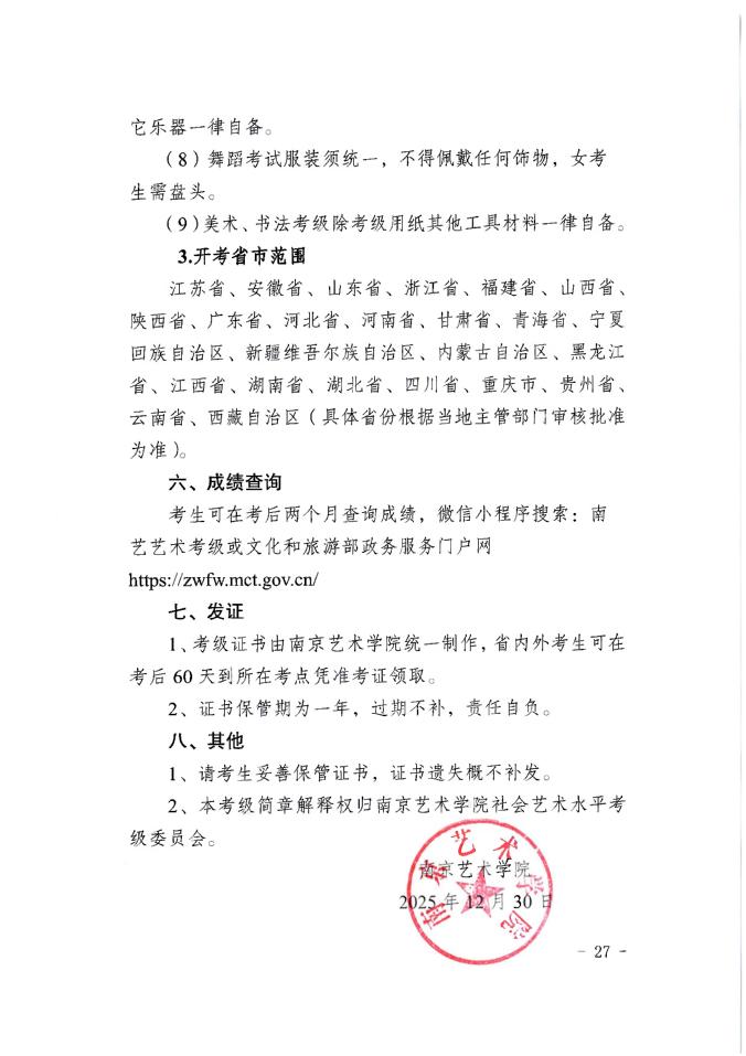 南京艺术学院社会艺术水平考级简章(2026版)
