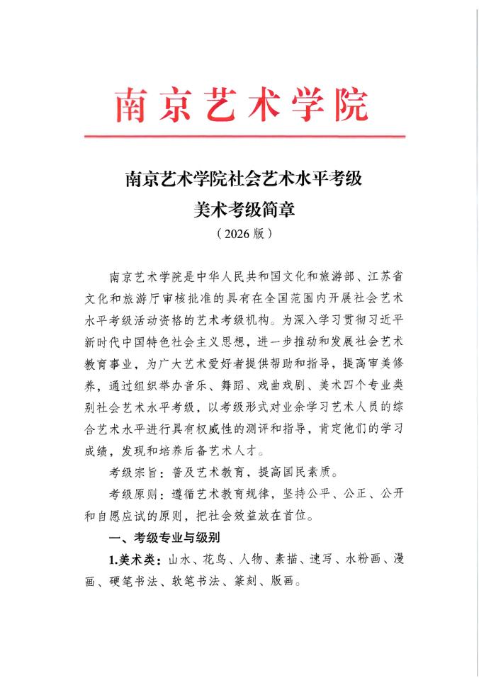 南京艺术学院社会艺术水平考级——美术考级简章(2026版)
